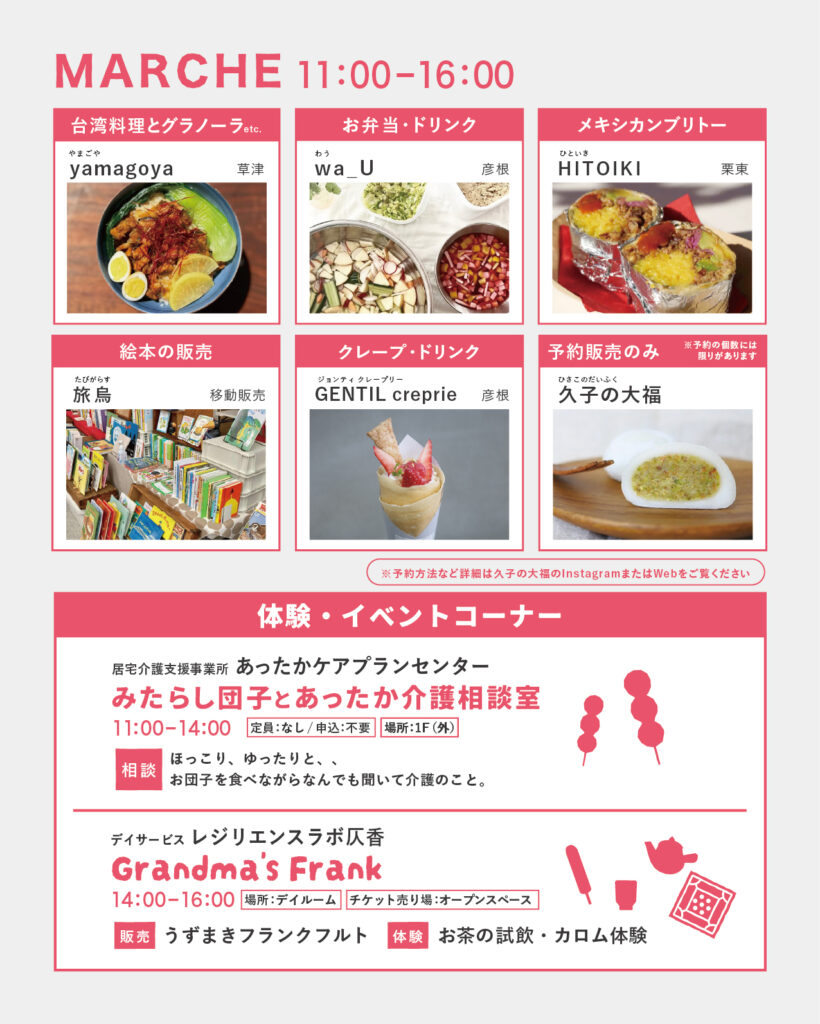 マルシェではクレープや台湾料理、お弁当などのフードブースがあるほか、13時からはトークイベントも開催されます。